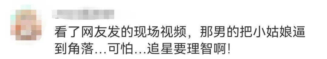 从网友发出的视频可见,当时这名男子将文淇堵在墙角,二人之间的距离已经非常近了,他还要向前逼近。一位女性工作人员护在文淇身前,戴着帽子和口罩的文淇则连续两次大声质问该男子:“你要干什么?”最后,该男子转身离开,而从其他网友发布的另一个视角的视频来看,该男子离开时骂了一句脏话。记者搜索发现,多位网友认出了视频中的这名男子,称其经常围堵艺人索要签名或合影。网友评论